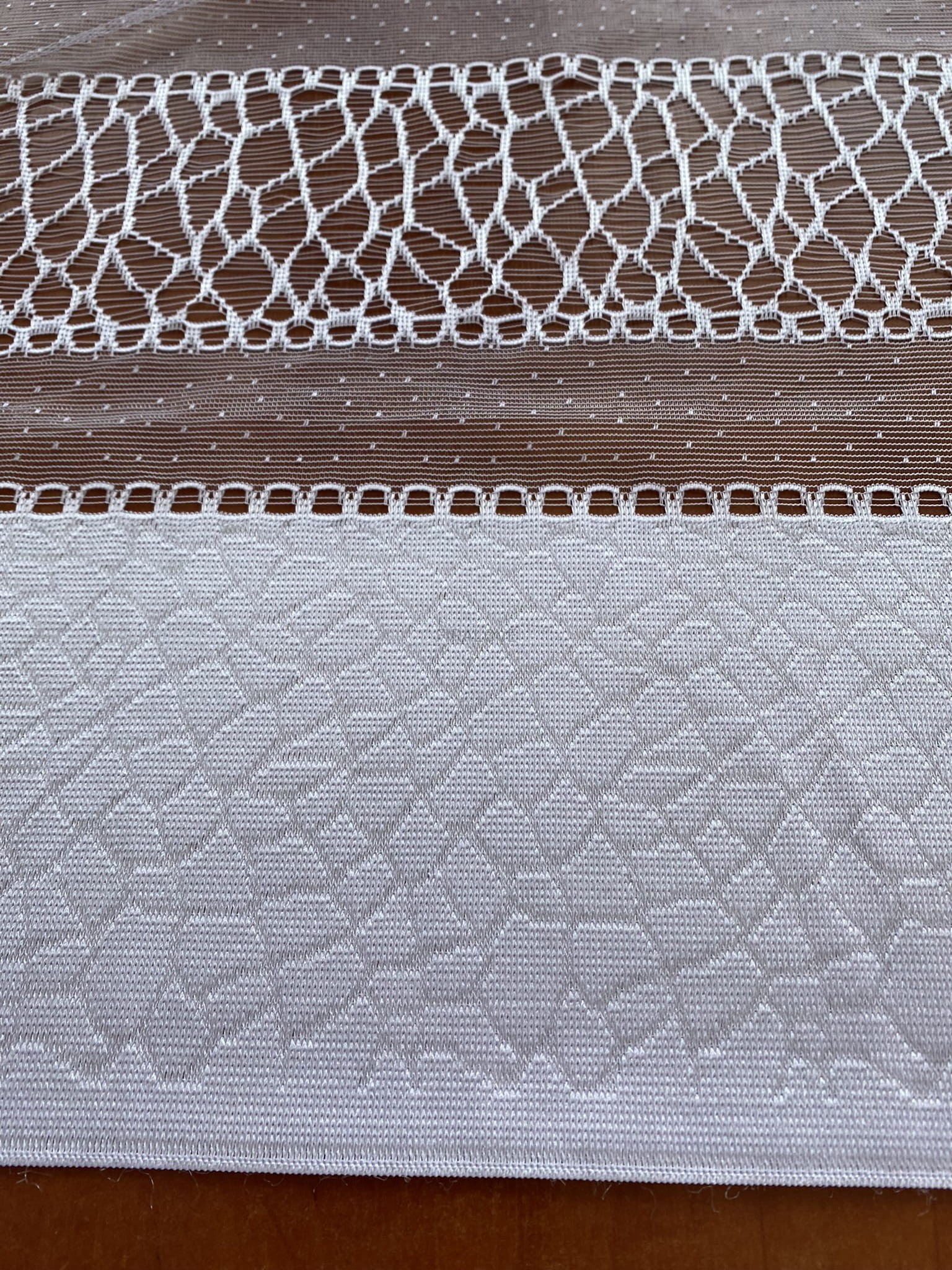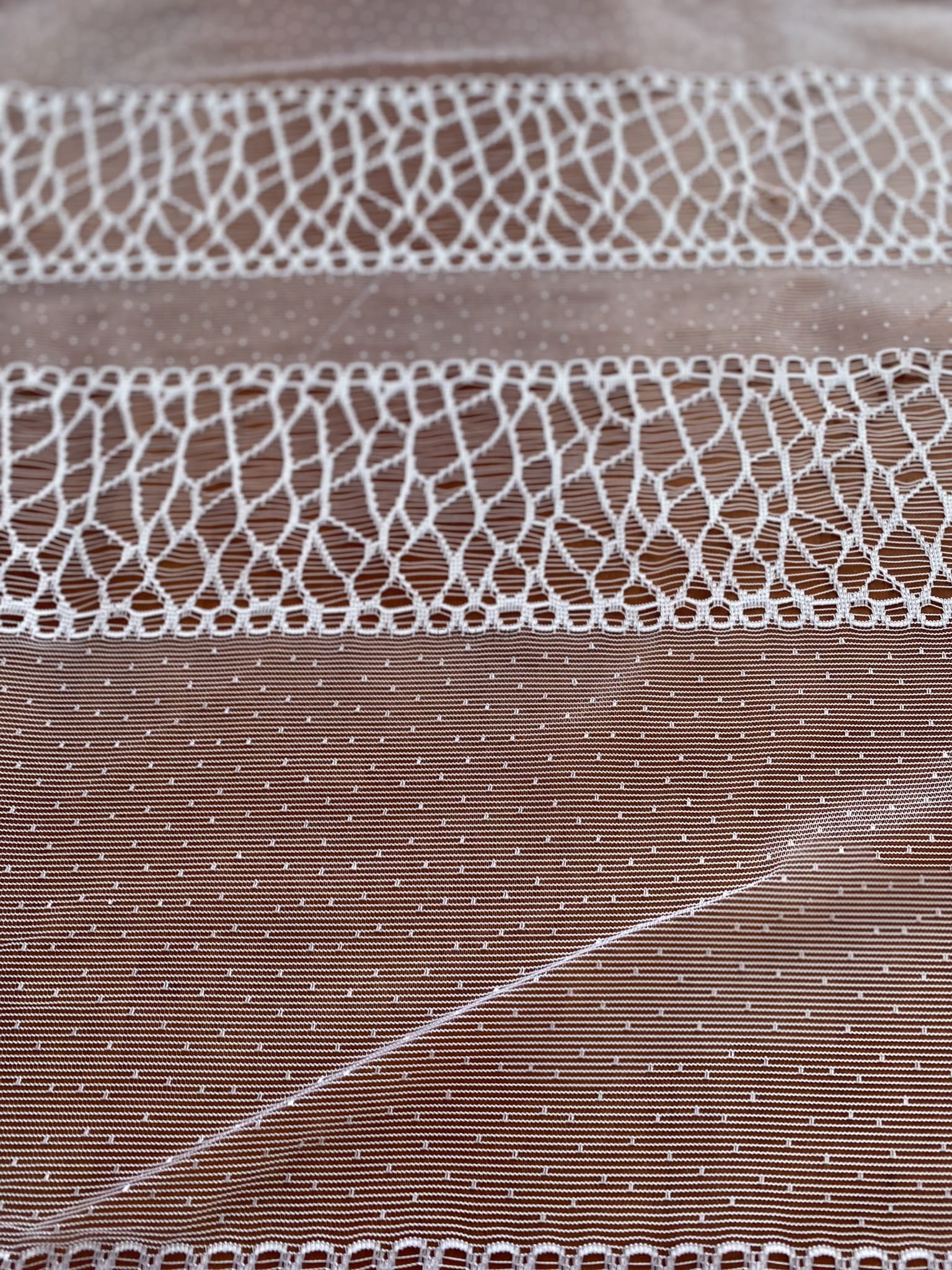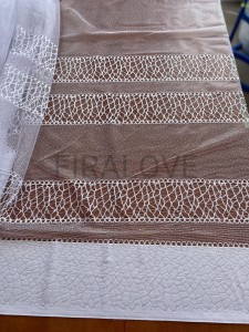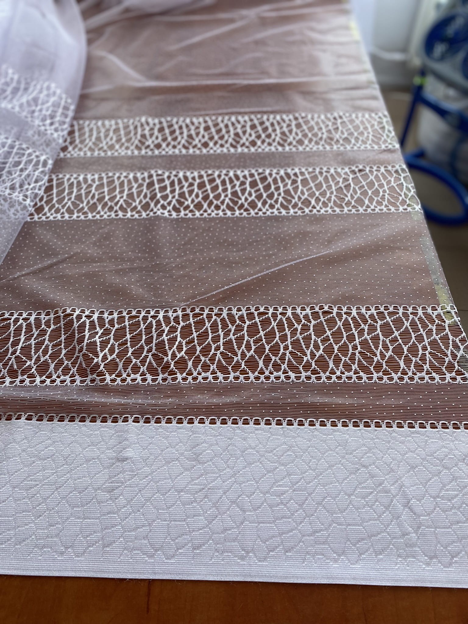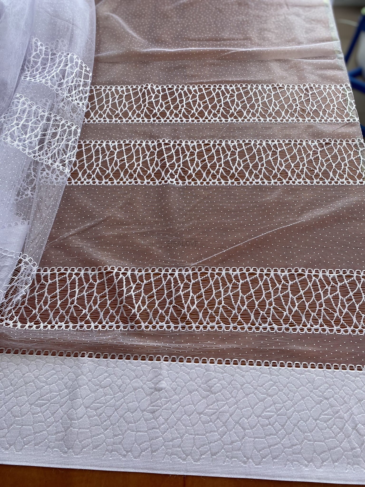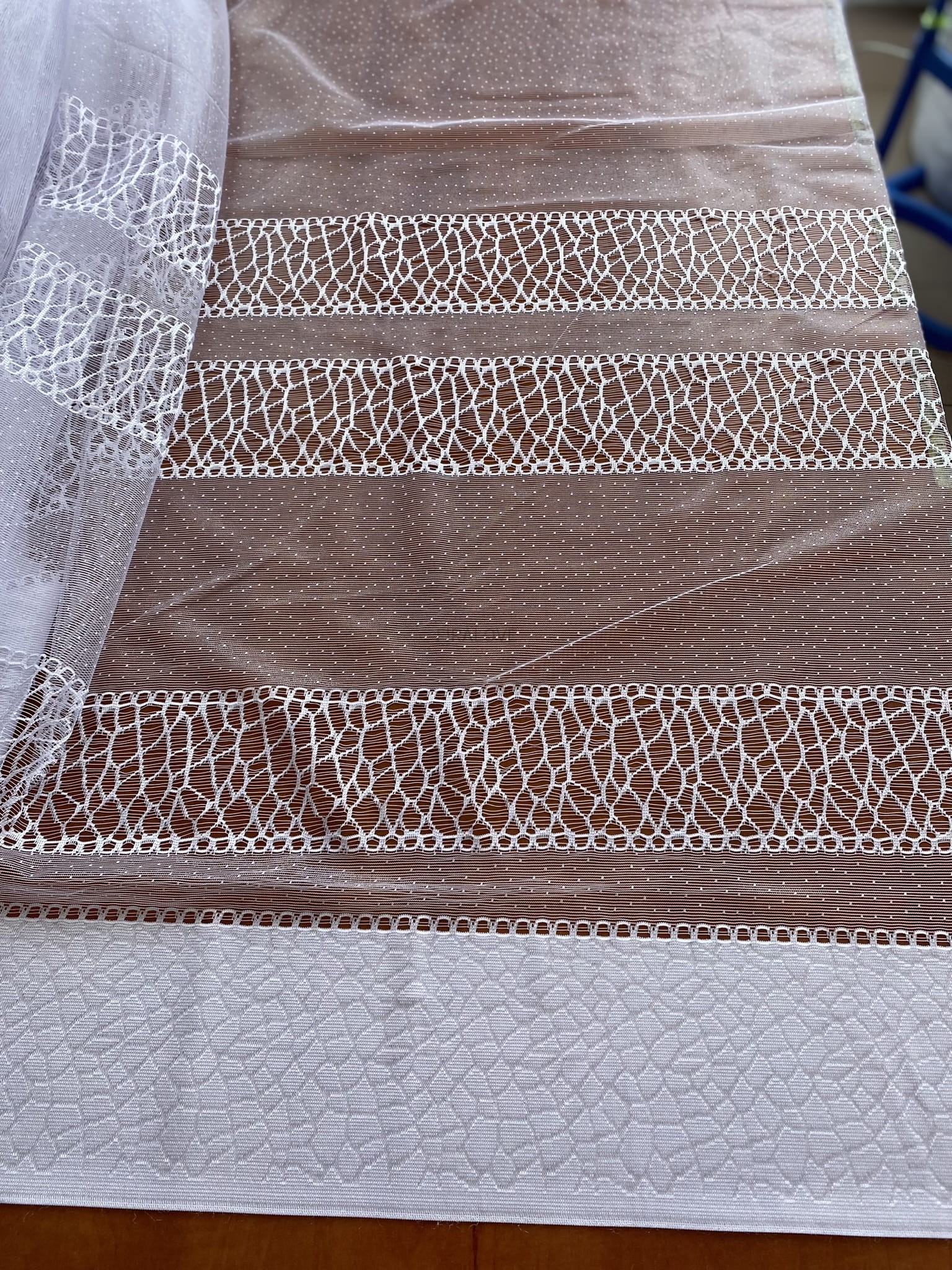 Ażurowe pasy w dolnej części firany.