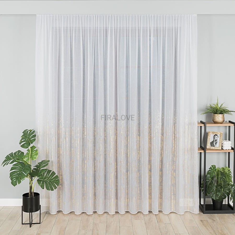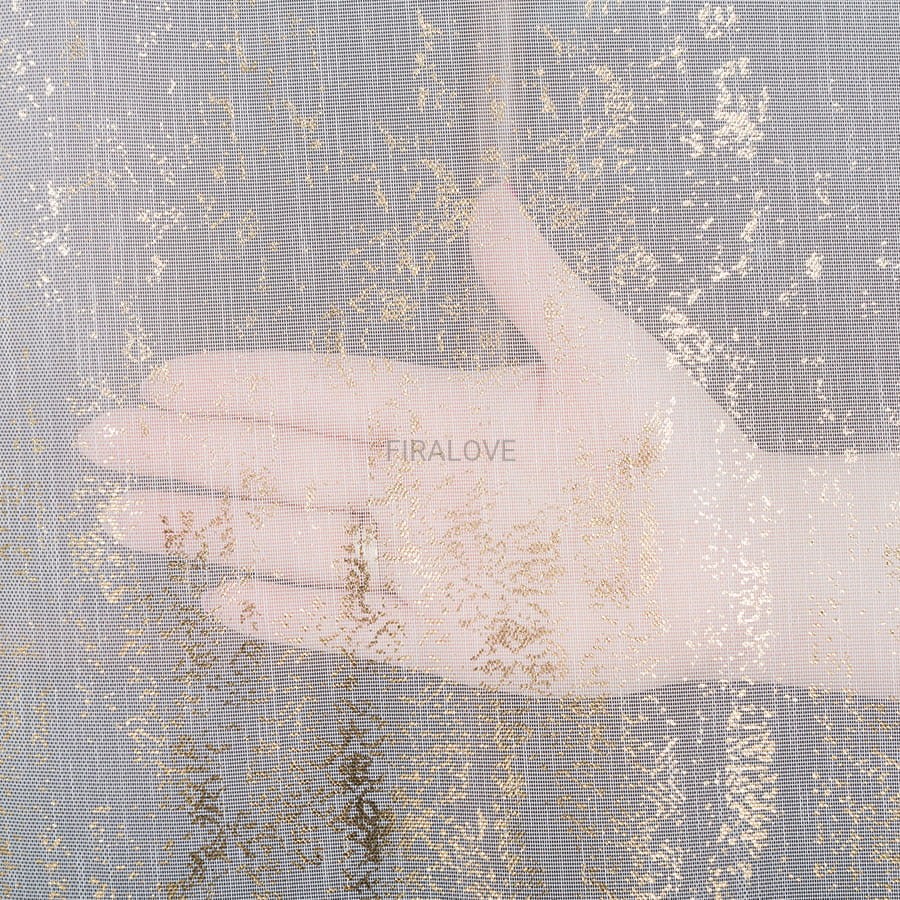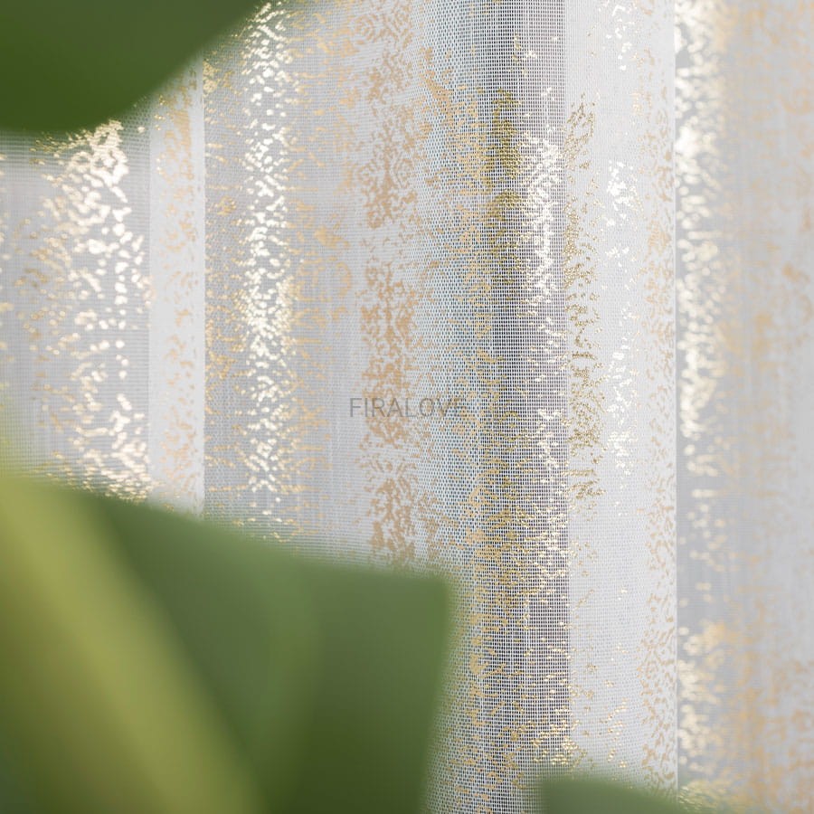 Firana 318099 ze złotym wzorem w dolnej części. Z tunelem