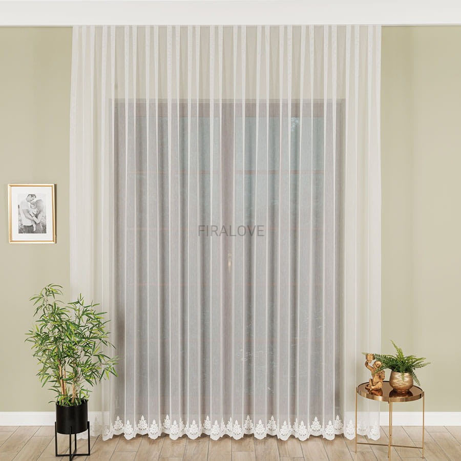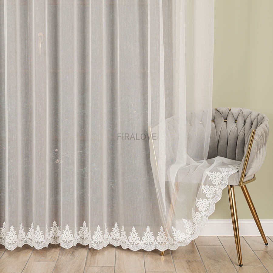 Firana 121490 haftowana. Kolor kremowy. Wysokość 280 cm.