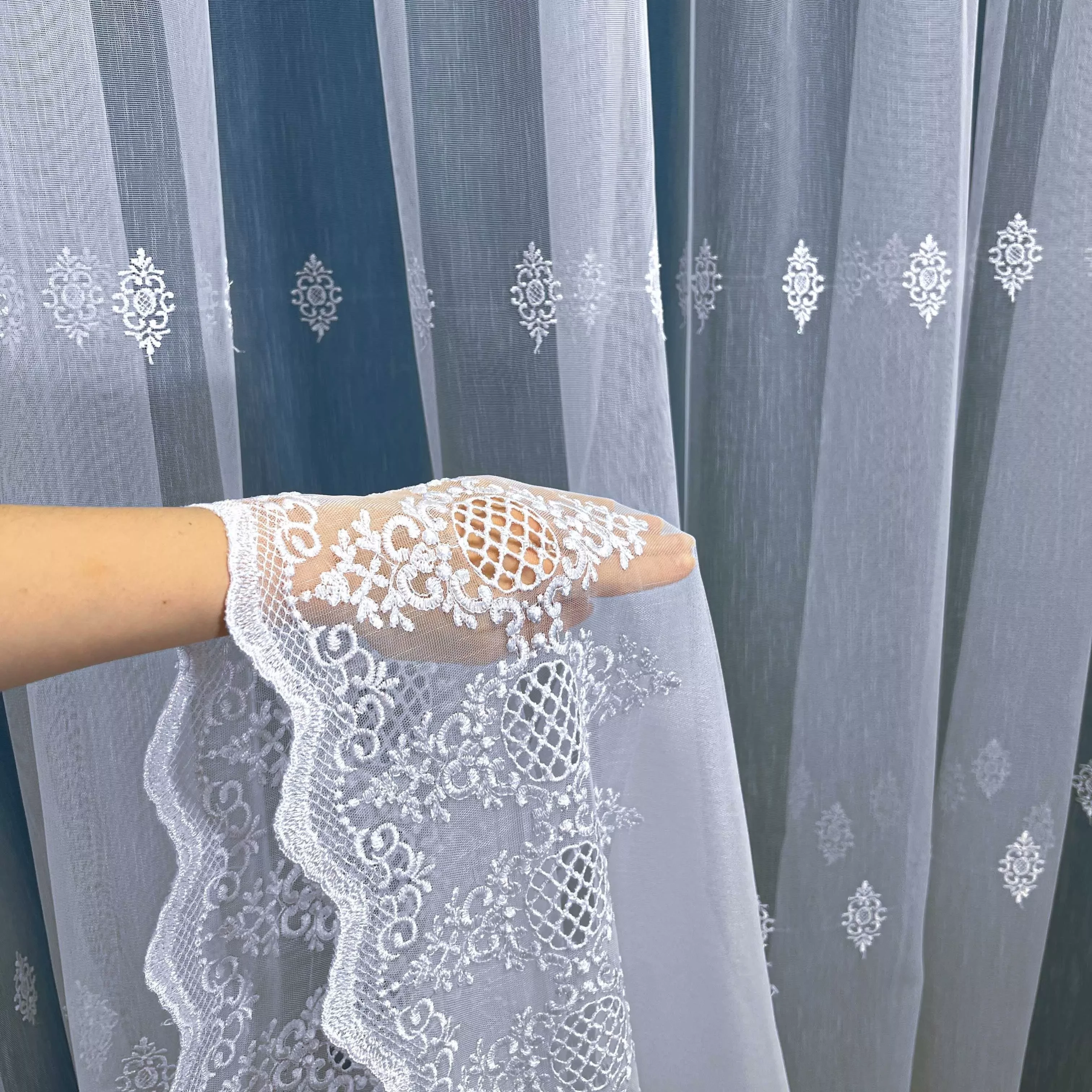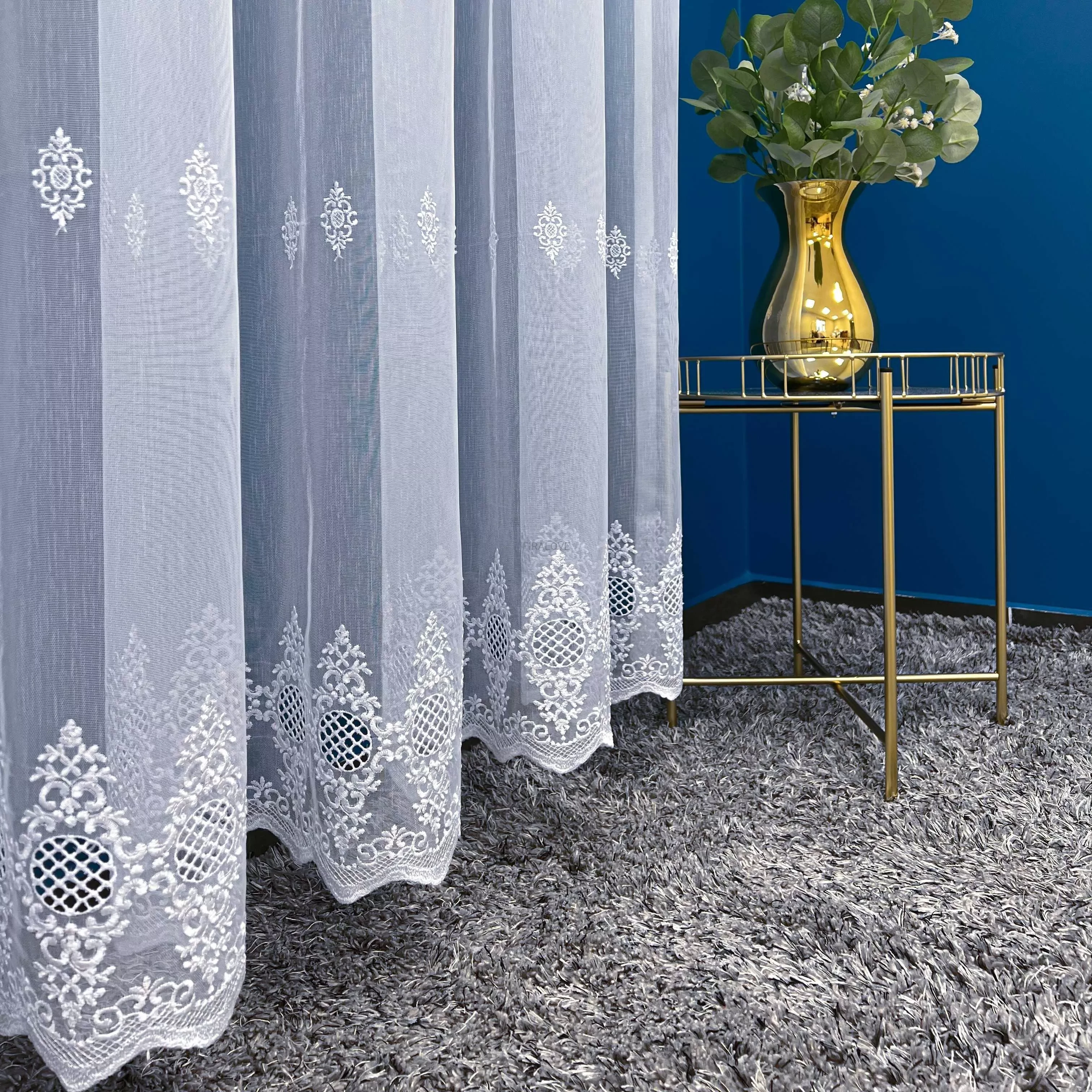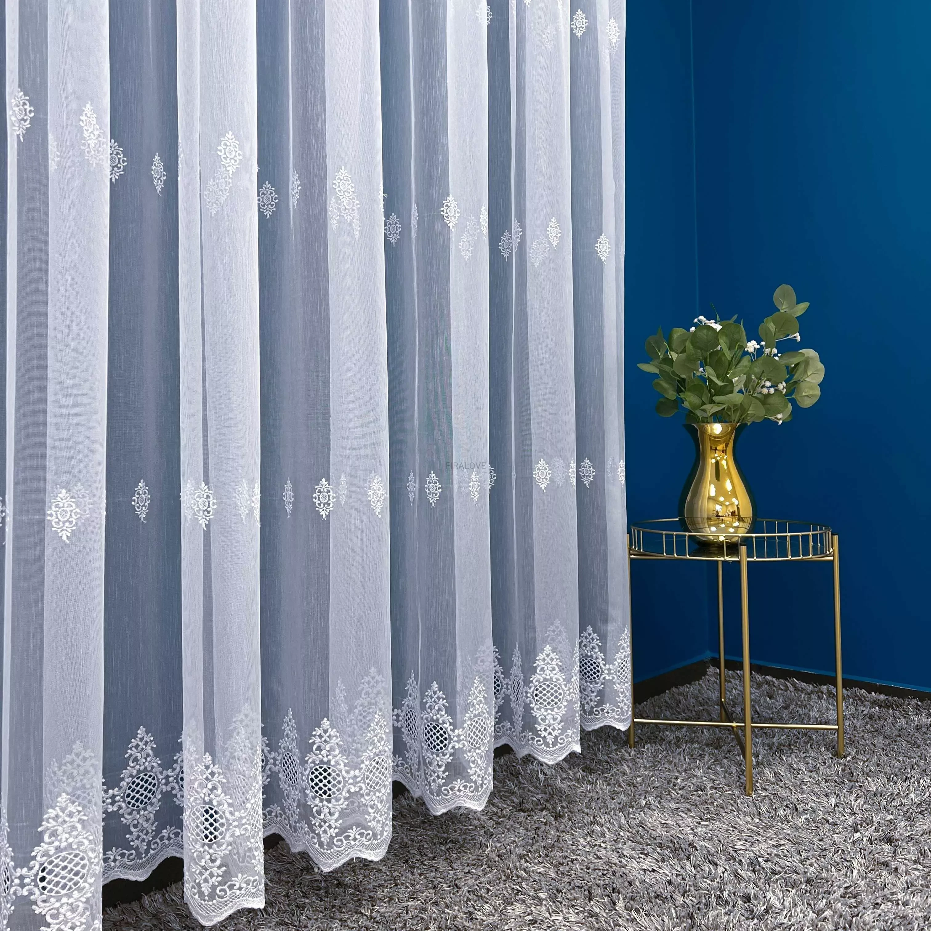 Firanka haftowana z tkaniny bambusowej – wysokość 280 cm, sprzedaż na metry