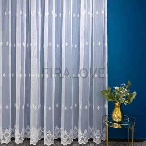 Subtelny, a zarazem elegancki haft na całej długości tkaniny nadaje firance wyjątkowego charakteru i sprawia, że staje się ozdobą każdego pomieszczenia. Materiał pięknie się układa i przepuszcza odpowiednią ilość światła dziennego, tworząc przytulną atmosferę.