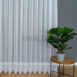 Firana markizeta z aplikacja, kolor biały. Wysokość 160 cm, sprzedawana na metry.