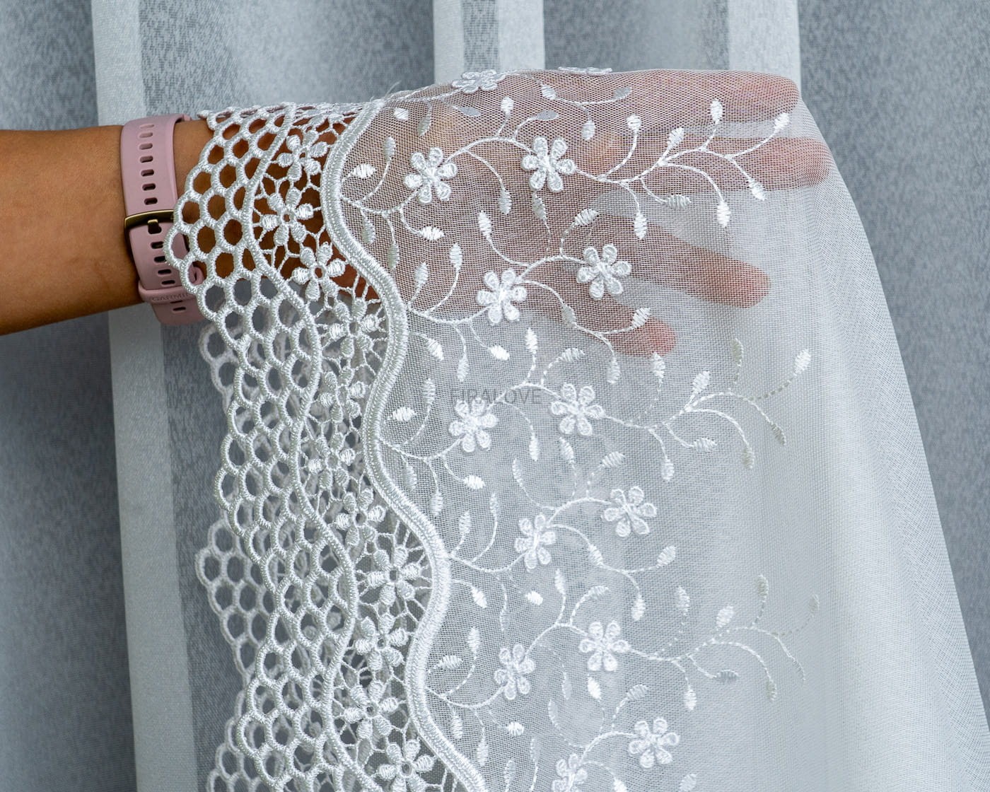 Firanka dostępna jest na metry, co pozwala idealnie dopasować długość do wymiarów Twojego okna – bez kompromisów.
