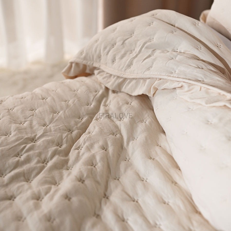 Wykonana z wysokiej jakości materiałów narzuta jest miła i przyjemna w dotyku, a dekoracyjna falbana nadaje jej subtelnej, romantycznej elegancji. Świetnie sprawdzi się zarówno w nowoczesnych, jak i klasycznych aranżacjach.