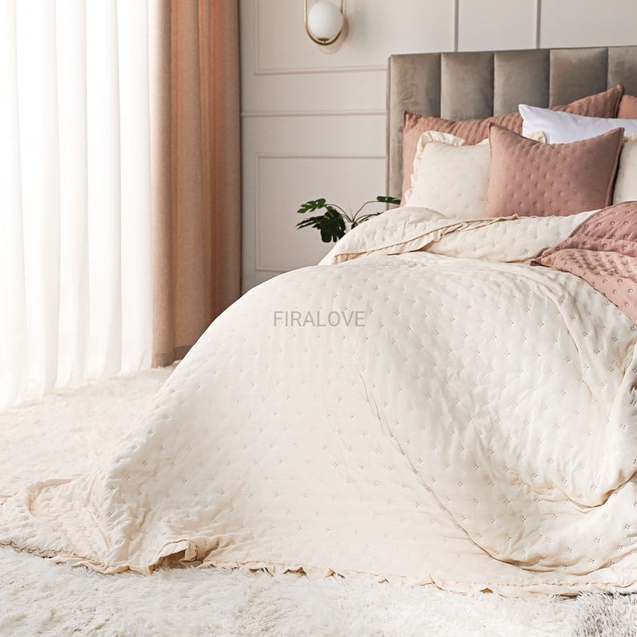 Narzuta dekoracyjna na łóżko o numerze katalogowym WERONA/NAP/112/220240/1. Kolor beżowy.