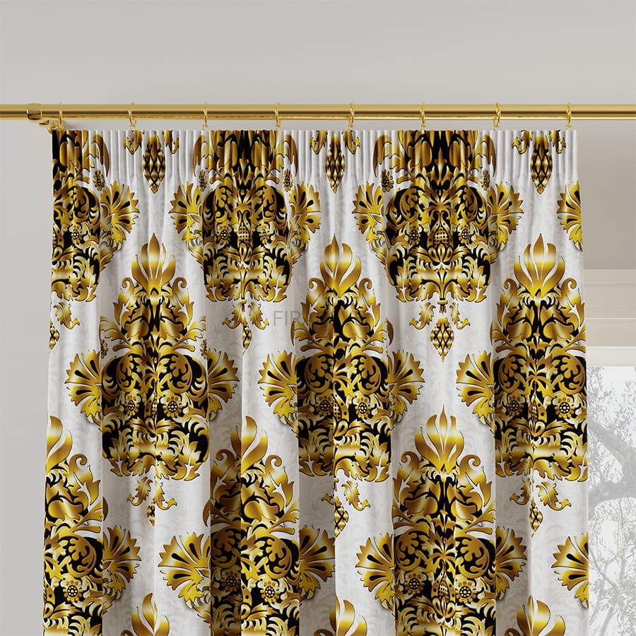 Tkanina dekoracyjna zasłonowa BLACKOUT z taśmą marszczącą.