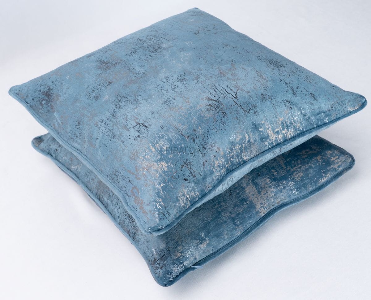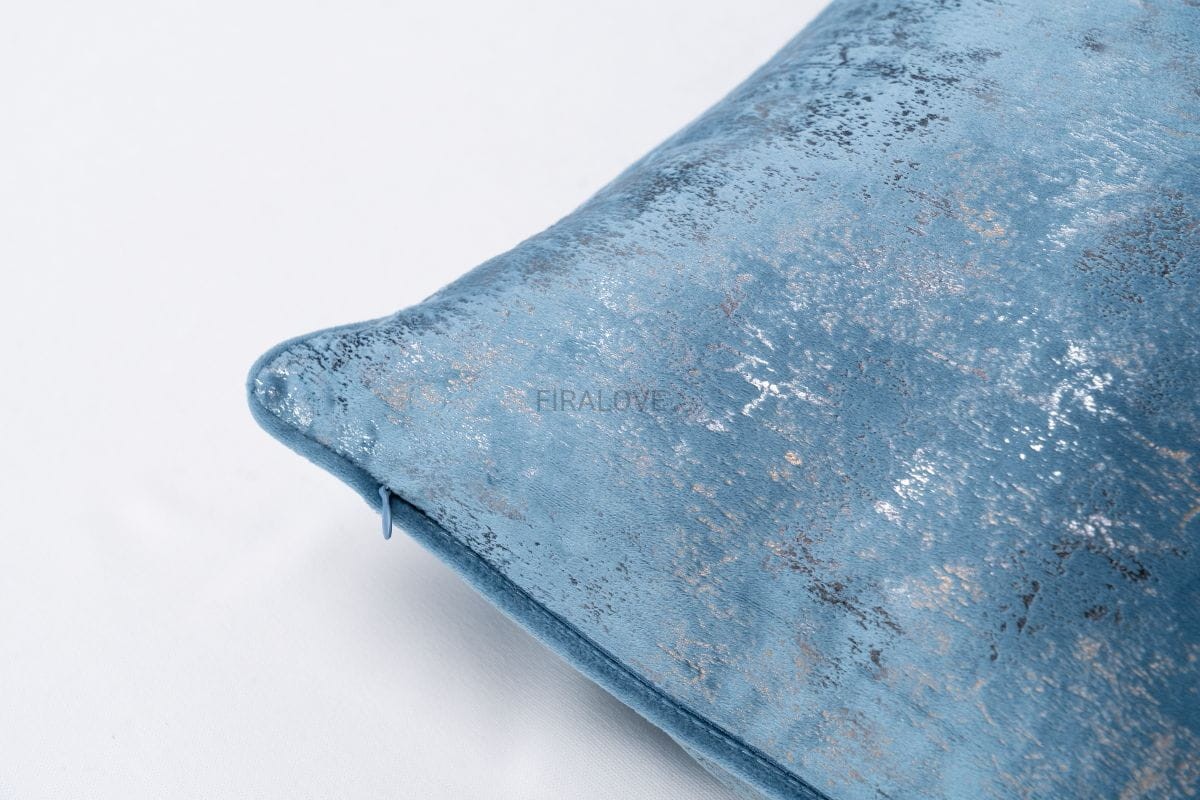 Stylowa poszewka w odcieniu zgaszonego niebieskiego z delikatnym, metalicznym połyskiem. Idealna do nowoczesnych i eleganckich wnętrz. Świetnie prezentuje się na sofie, łóżku czy fotelu.