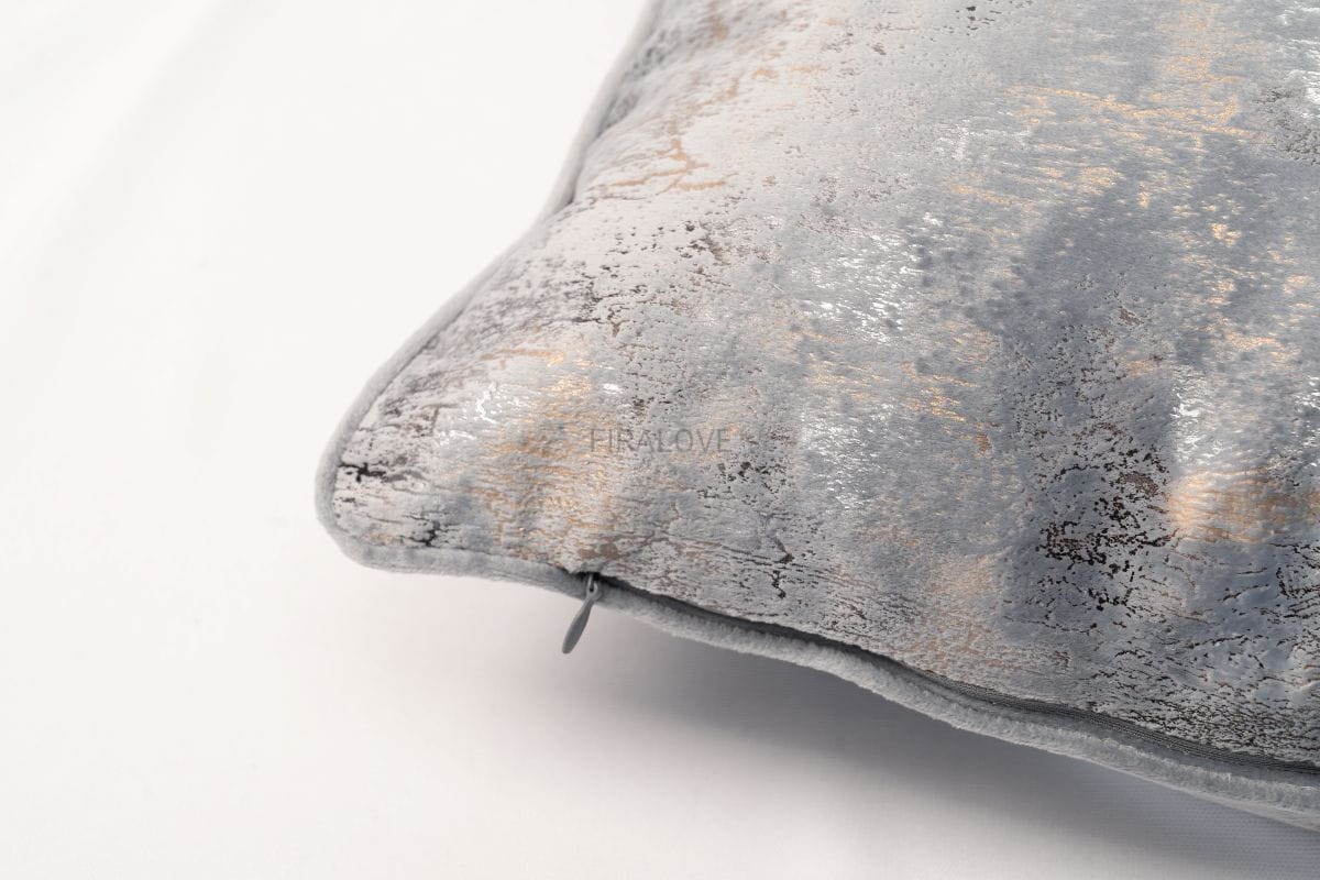 Stylowa poszewka w odcieniu jasnej szarości z delikatnym, metalicznym połyskiem. Idealna do nowoczesnych i eleganckich wnętrz. Świetnie prezentuje się na sofie, łóżku czy fotelu.