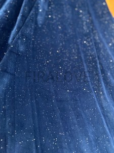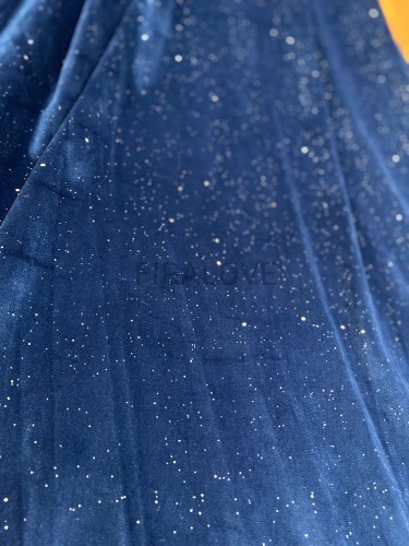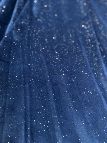 Tkanina welur niebieska ze srebrnym brokatem